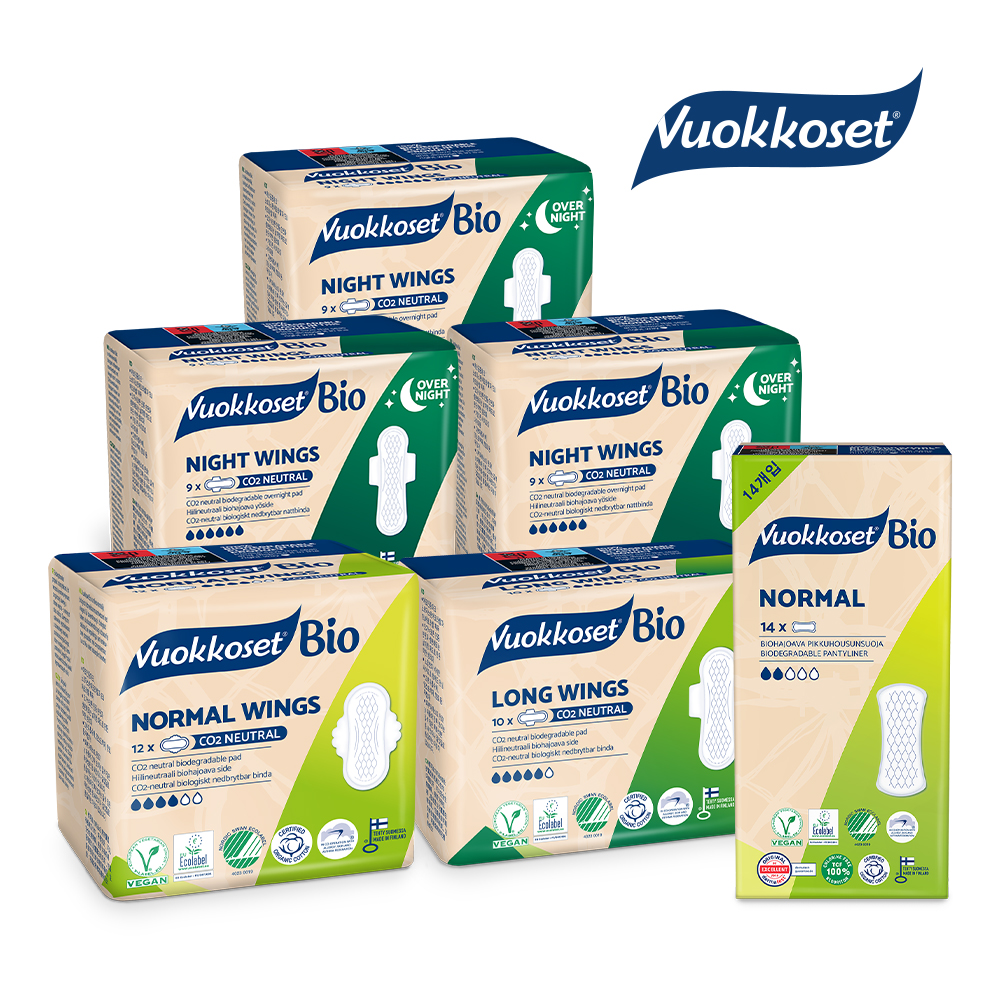 home > [브랜드관] > 뷰코셋 > 브랜드 소개 > VUOKKOSET 뷰코셋 생리대 노말윙1팩+롱윙1팩+나이트윙3팩+팬티라이너(14p)1팩